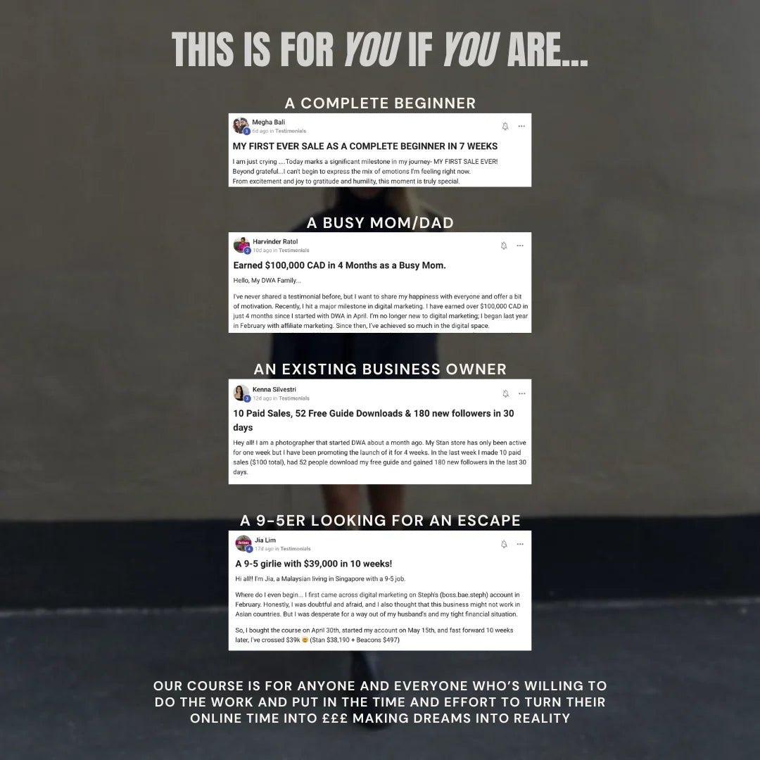 No Prior Experience Needed: We’ve simplified the tech-heavy process into digestible steps, so you don’t need a design or marketing background to succeed.
