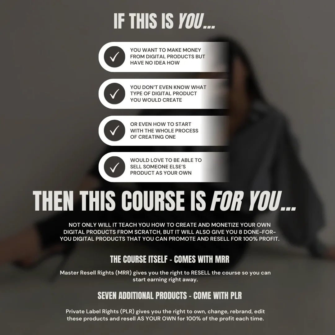 A comprehensive, step-by-step course designed to help you create, launch, and scale profitable digital products—without the tech overwhelm or guesswork.